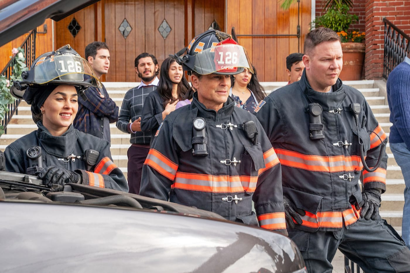 9-1-1: LONE STAR: L-R: Natacha Karam, Rob Lowe and Jim Parrack in the The Bird episode of 9-1-1: LON